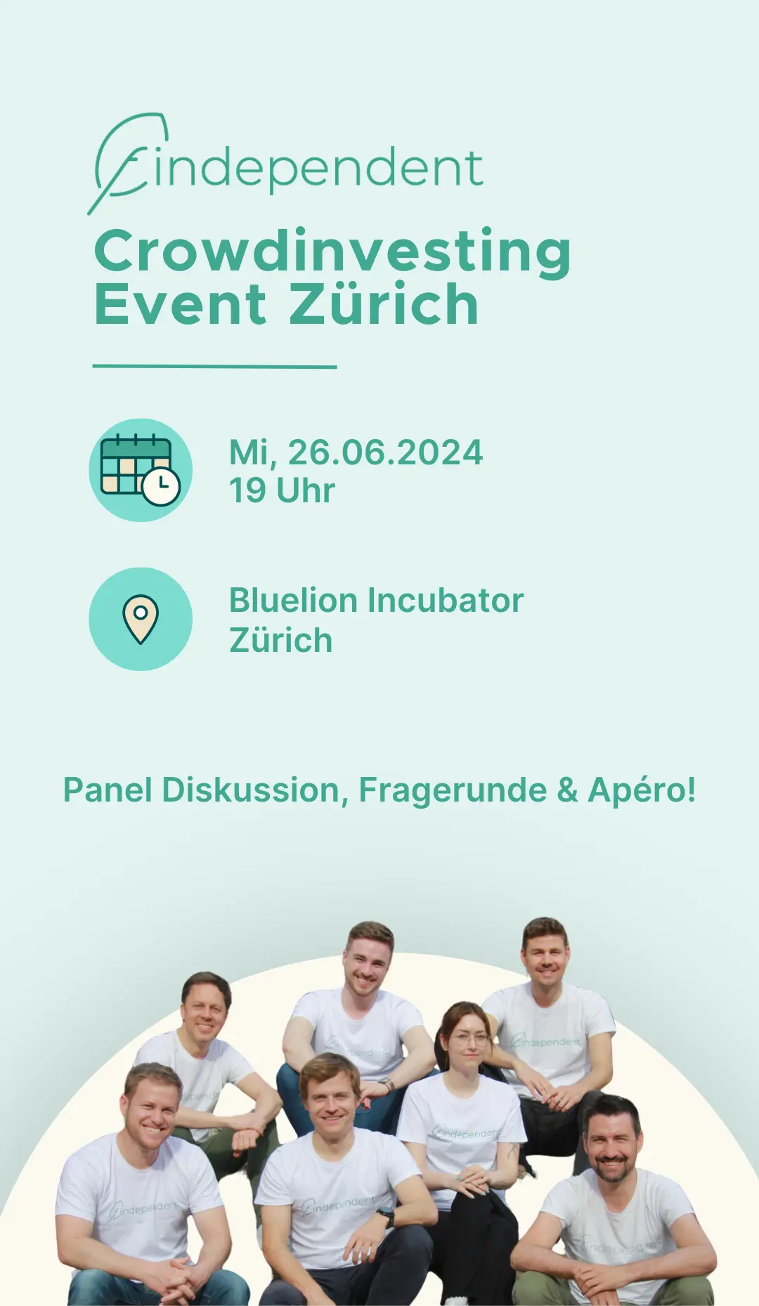 Du bist interessiert Miteigentümer:in bei findependent zu werden, hast aber noch ein paar Fragen zu findependent oder dem Crowdinvesting? Dann komm zu unserem Event in Zürich, wo wir die wichtigsten Aspekte des Crowdinvesting adressieren und deine Fragen beantworten.