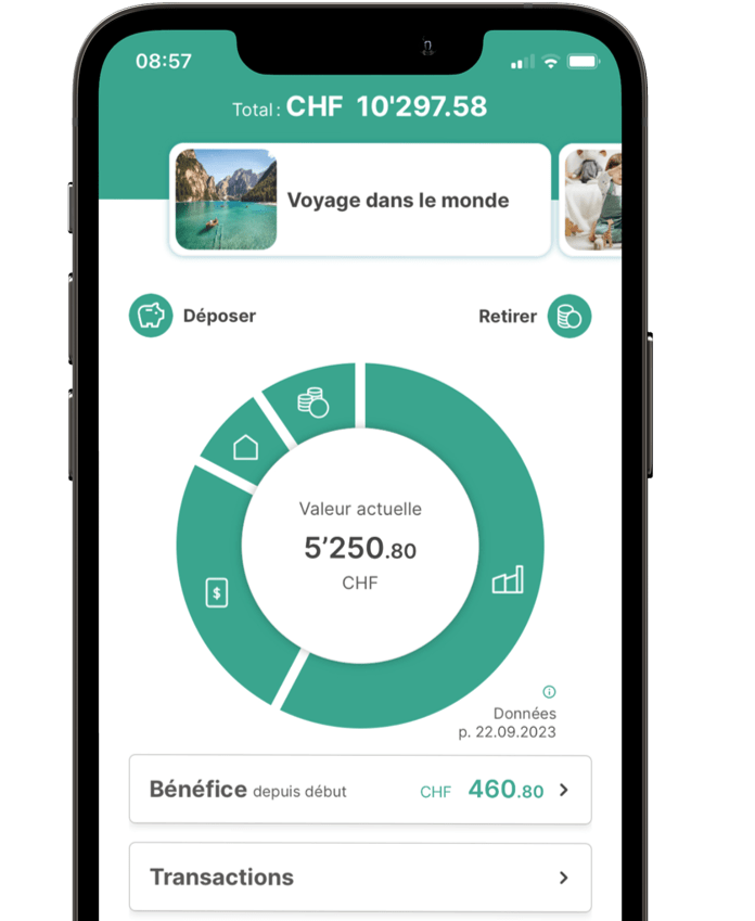 Investis ton argent au lieu de le laisser dormir sur ton compte. Pour investir, utilise des solutions de placement simples, avantageuses et transparentes qui investissent dans des ETF sur une large base.