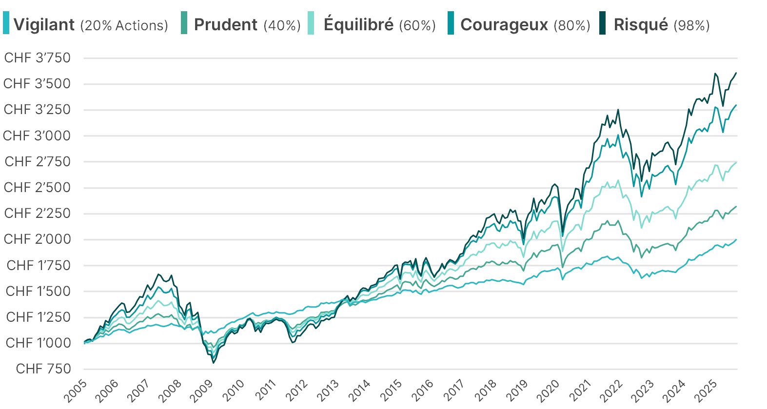 Parmi une jungle de plus de 1’500 ETF, nous avons sélectionné pour toi les meilleurs ETF et composé cinq solutions de placement prêtes à l’emploi.