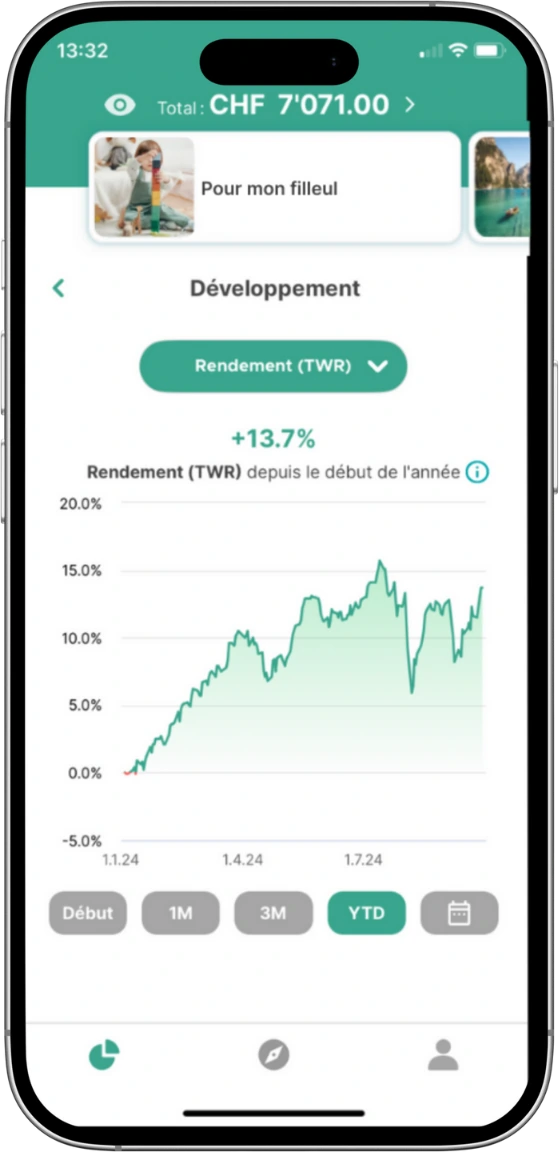 Nous t’accompagnons sans effort : tu poses la première pierre et nous veillons à ce que l’argent puisse fructifier sereinement au fil des ans. Le Swiss ETF Award confirme que c’est non seulement intelligent, mais que cela fonctionne aussi à merveille.