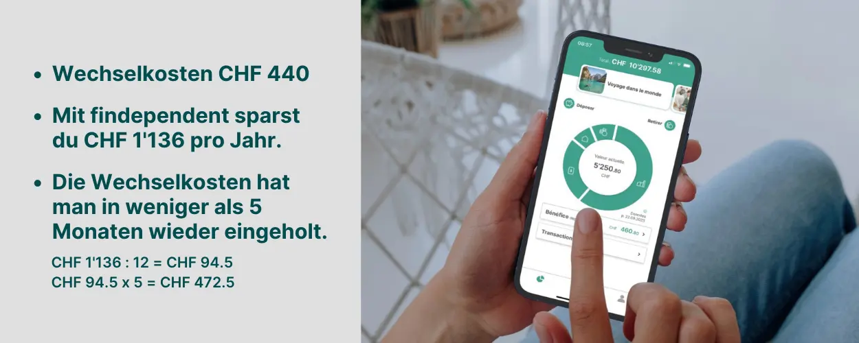 Wechselkosten: Der Wechsel ist mit Kosten von einmalig 440 Franken verbunden. Demgegenüber steht die jährliche Ersparnis von 1’136 Franken.