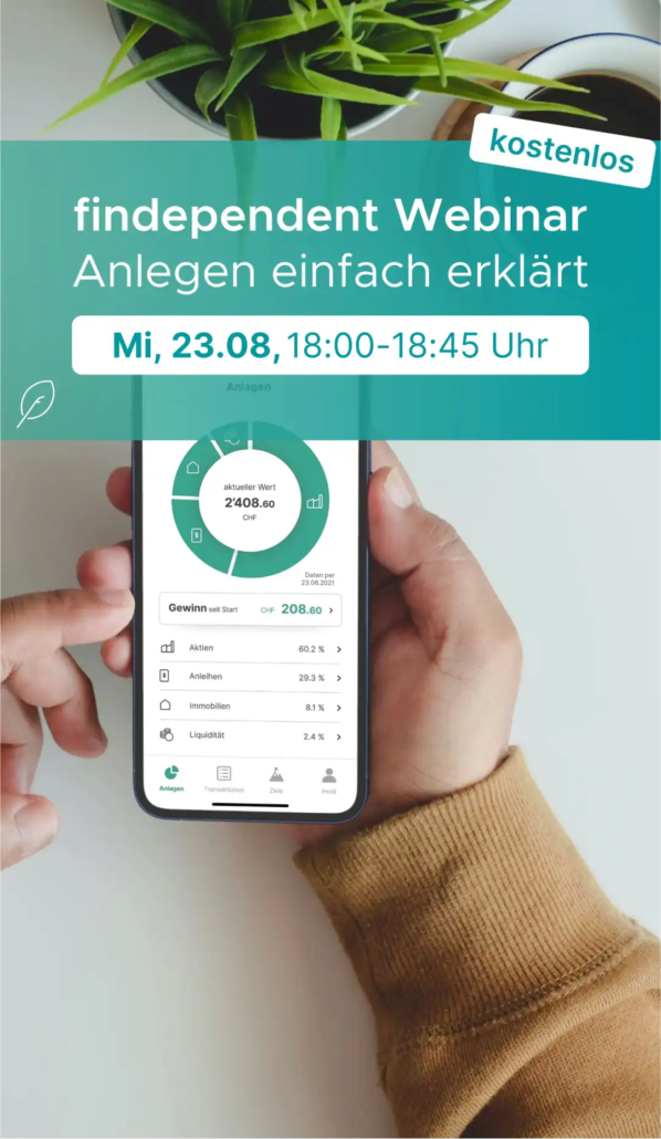 Wir erklären dir in unserem Webinar, worauf es beim Anlegen ankommt – auf einfache und verständliche Weise und aufs Wesentliche heruntergebrochen. Du wirst sehen: Um erfolgreich anzulegen, musst du dich weder ständig mit den Finanzmärkten auseinandersetzen, noch übermässiges Risiko eingehen. Und du brauchst weder viel Vorwissen noch ein halbes Vermögen, um überhaupt loslegen zu können.