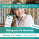 Wir erklären dir in unserem Webinar, worauf es beim Anlegen ankommt – auf einfache und verständliche Weise und aufs Wesentliche heruntergebrochen. Du wirst sehen: Um erfolgreich anzulegen, musst du dich weder ständig mit den Finanzmärkten auseinandersetzen, noch übermässiges Risiko eingehen. Und du brauchst weder viel Vorwissen noch ein halbes Vermögen, um überhaupt loslegen zu können.